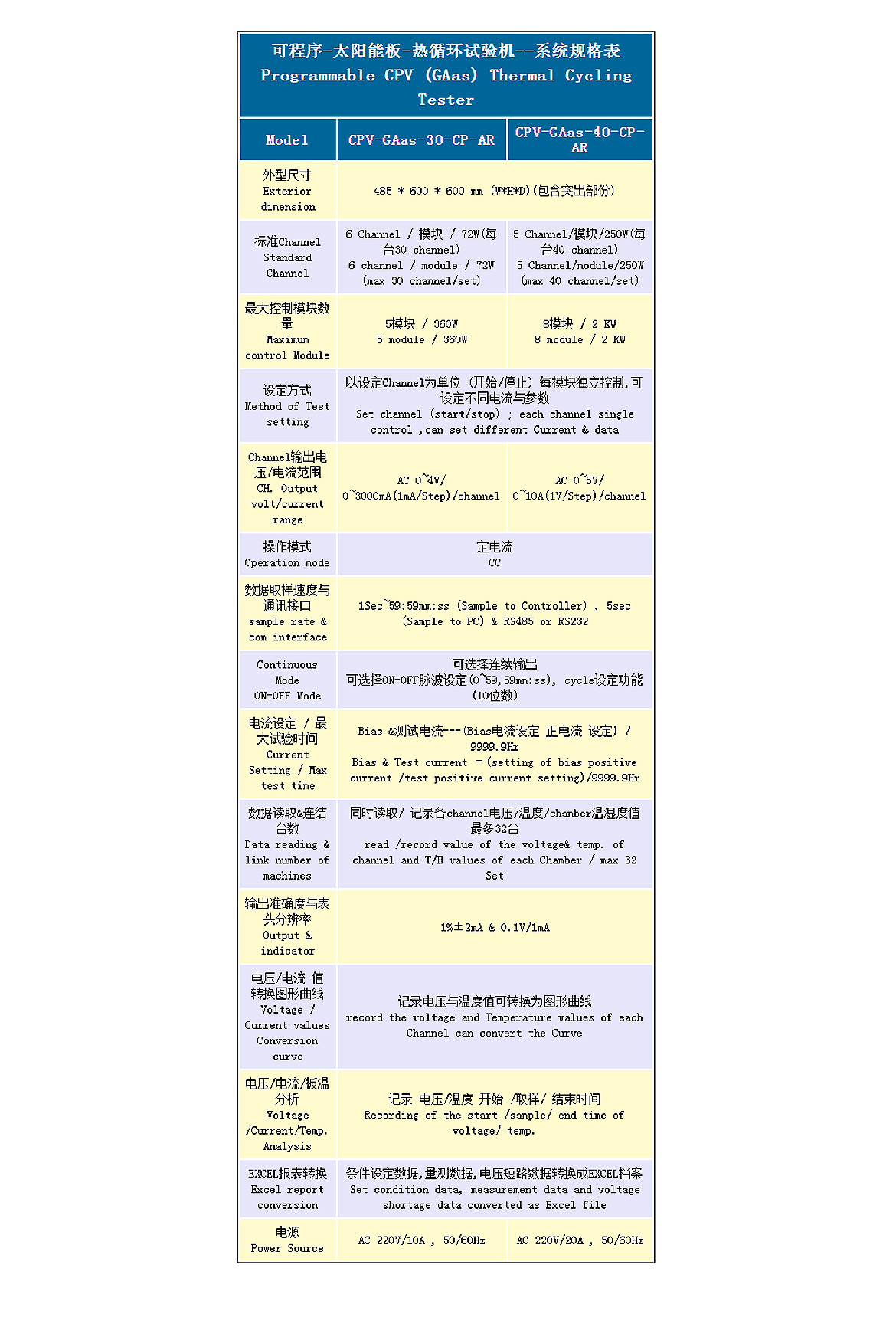 Programmable Light Bar Life Tester--系统规格表 (PLBL- 40- V/I -CP - SD)
